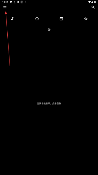 1.首先下載安裝好軟件,第一次打開的用戶會發(fā)現(xiàn)頁面一片黑,什么都沒有,倒帶音樂目前僅支持網(wǎng)易云和QQ音樂,若是想聽音樂我們需要先登陸網(wǎng)易云音樂賬號或QQ音樂賬號;