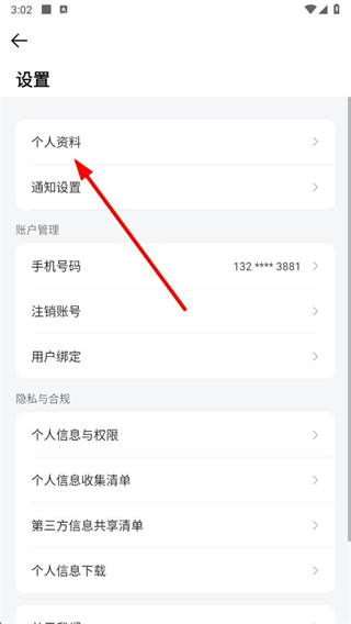 3、在設(shè)置頁(yè)面中,選擇個(gè)人資料選項(xiàng),進(jìn)入個(gè)人資料頁(yè)面。