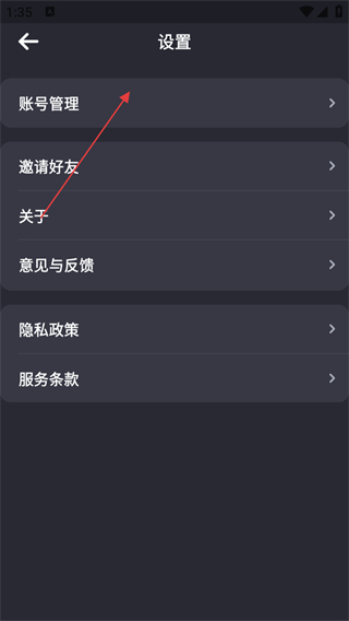 3、在設(shè)置頁面點擊“賬號管理”選項。