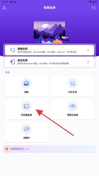 2、進(jìn)入到首頁內(nèi),點(diǎn)擊瀏覽器投屏的功能按鈕。