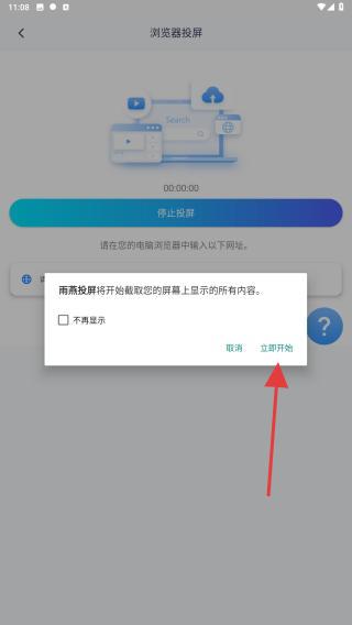3、投屏前,會(huì)彈出溫馨提示,點(diǎn)擊立即開始。