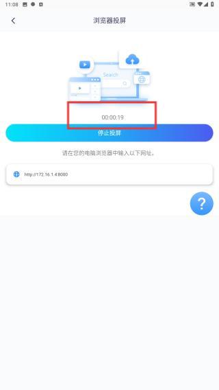 4、開始后,頁面會(huì)顯示正在投屏的計(jì)時(shí)信息。