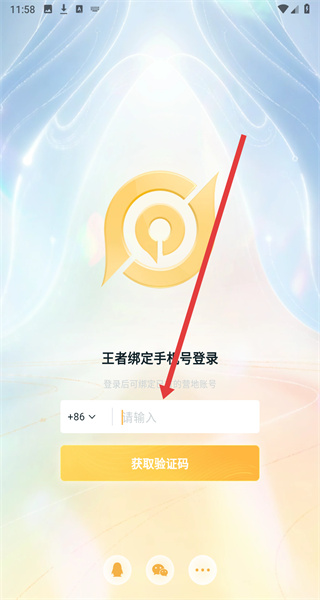 2、在王者綁定手機(jī)號登錄頁輸入手機(jī)號碼,準(zhǔn)備獲取驗(yàn)證碼。