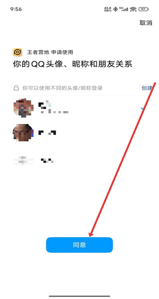 1、點(diǎn)擊“王者營地許可及服務(wù)協(xié)議”彈窗的“同意”,進(jìn)入登錄頁面。
