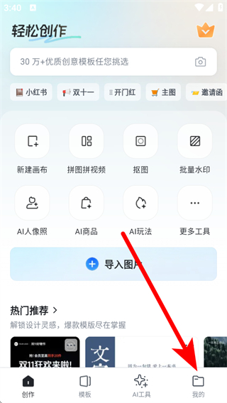 1、打開稿定設(shè)計APP,在主界面點擊底部菜單欄中的AI工具選項。