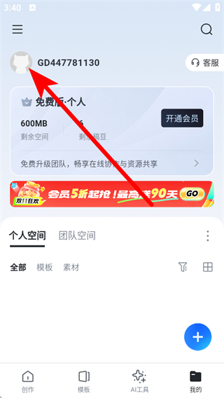 1、打開稿定設(shè)計APP,點擊右下角我的,進入個人頁面。
