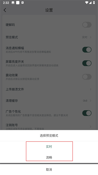 3、在設(shè)置頁面,點擊預(yù)覽模式選項。