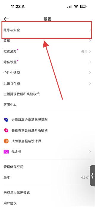2、在設(shè)置頁(yè)面中找到賬號(hào)與安全選項(xiàng)并點(diǎn)擊,進(jìn)入賬號(hào)與安全頁(yè)面。