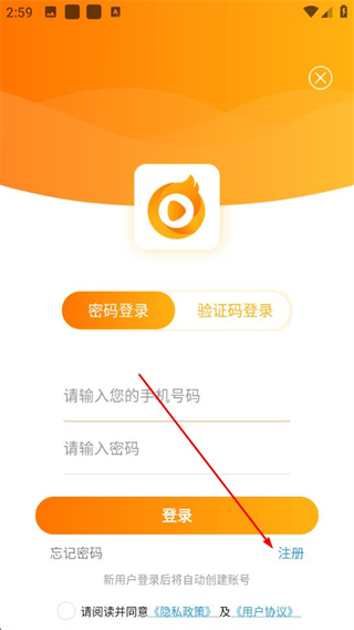 2、在個人中心頁面點擊注冊,進入注冊界面。