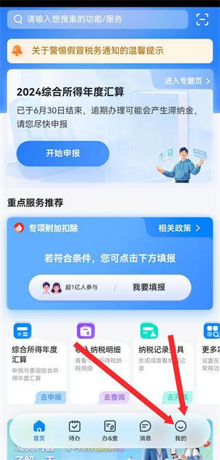 1、打開個人所得稅APP,點擊右下角我的,進入個人頁面。