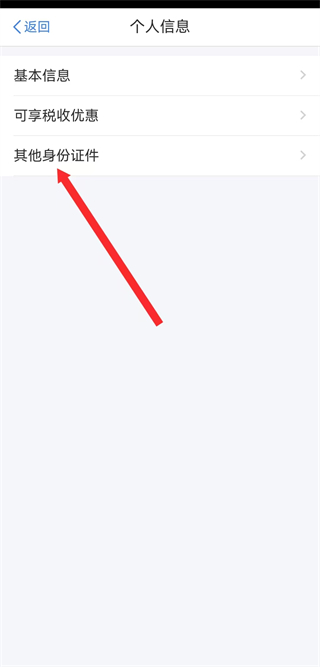 3、在個人信息頁面,點擊其他身份證件選項,進入其他身份證件頁面。