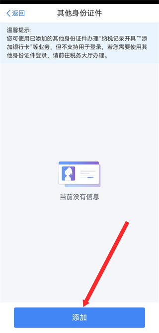 4、在其他身份證件頁面,點擊添加,按照提示完成添加操作。