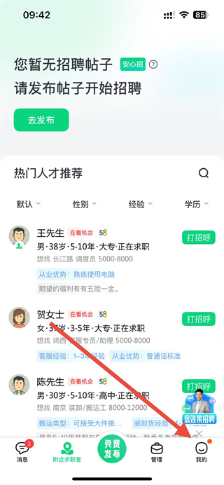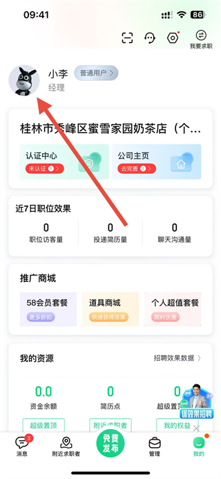 1、打開趕集招聘商家版App,點擊底部導航欄右下角我的,進入個人設(shè)置頁面。