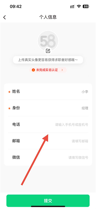 3、編輯完成后,點擊底部的提交按鈕,即可保存編輯后的個人資料。