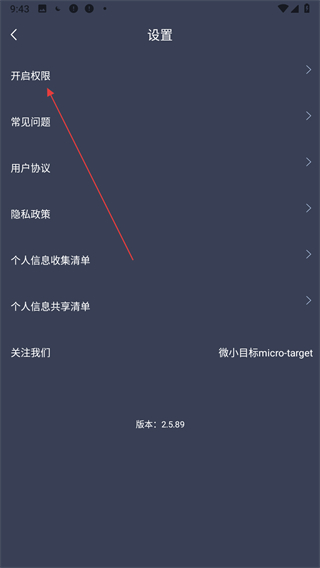 2、在設(shè)置頁面中找到開啟權(quán)限選項并點擊。