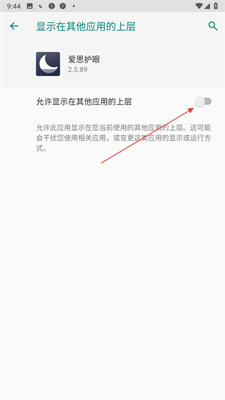 4、進入設(shè)置界面后,找到允許顯示在其他應(yīng)用的上層開關(guān),點擊該開關(guān)將其開啟。