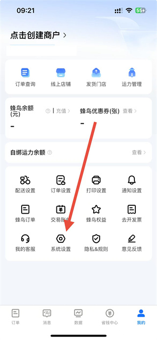 1、打開蜂鳥跑腿app,點擊底部導航欄中的我的選項。