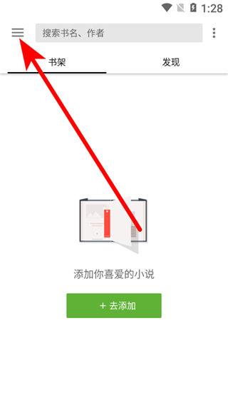 1、在輕閱小說(shuō)書(shū)架頁(yè)面,點(diǎn)擊左上角三橫線選項(xiàng),展開(kāi)功能菜單。