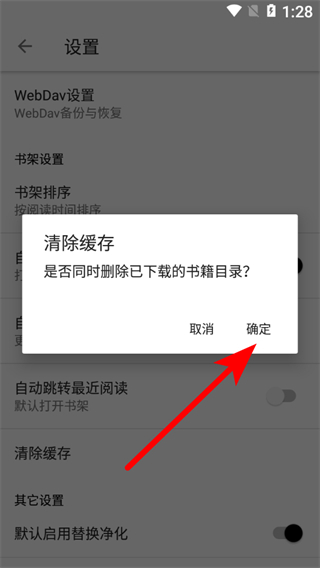 3、在設(shè)置頁(yè)面,點(diǎn)擊清除緩存選項(xiàng),彈出確認(rèn)窗口。