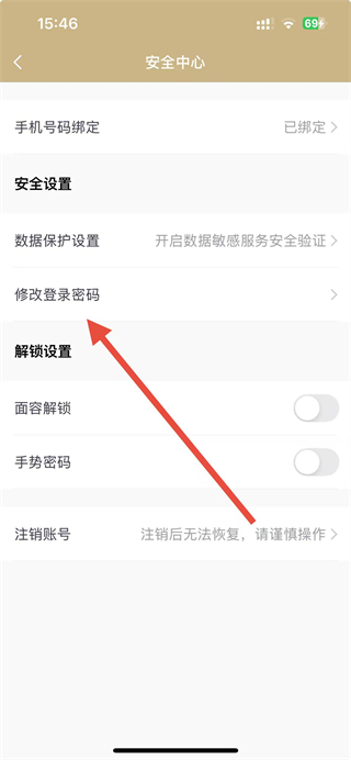 4、在安全中心頁面,點擊修改登錄密碼選項,按照提示完成密碼修改操作即可。