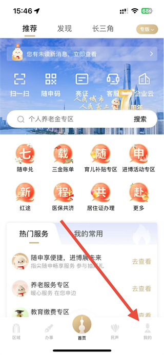 1、打開隨申辦市民云APP,點擊右下角我的進入個人頁面。