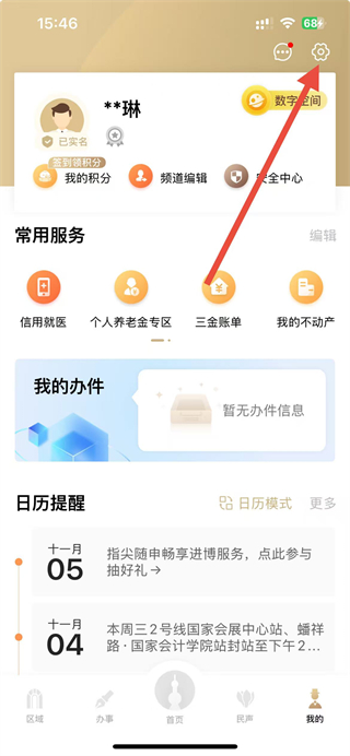 2、在個人界面中,點擊右上角設(shè)置圖標,進入設(shè)置頁面。