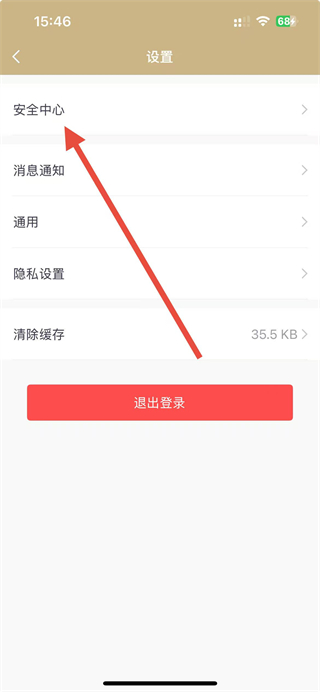 3、進入設(shè)置頁面后,點擊安全中心選項。