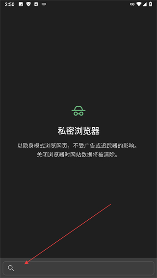 4、點(diǎn)擊底部的搜索欄,即可開始私密瀏覽。