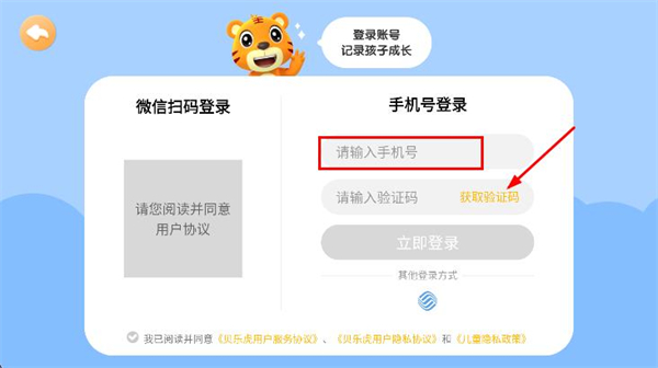 2、在登錄頁面,輸入手機號,點擊獲取驗證碼。