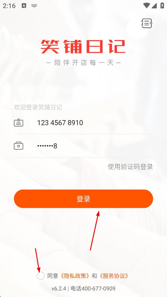 3、在賬號密碼登錄模式下,先輸入手機號,接著輸入登錄密碼,然后勾選同意協(xié)議。