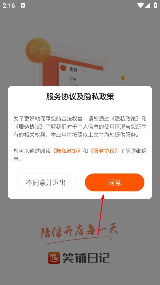 1、打開會彈出服務(wù)協(xié)議及隱私政策提示框,仔細閱讀相關(guān)內(nèi)容后,點擊“同意”按鈕,進入登錄界面。