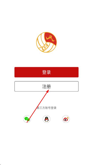 1、打開(kāi)中國(guó)排球協(xié)會(huì)APP,點(diǎn)擊注冊(cè)按鈕,進(jìn)入注冊(cè)流程。