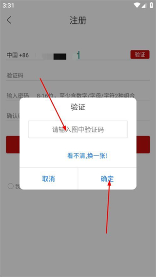 2、在注冊(cè)流程中,輸入圖中驗(yàn)證碼,點(diǎn)擊確定完成驗(yàn)證。