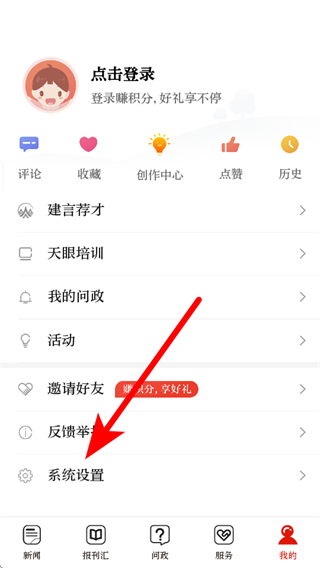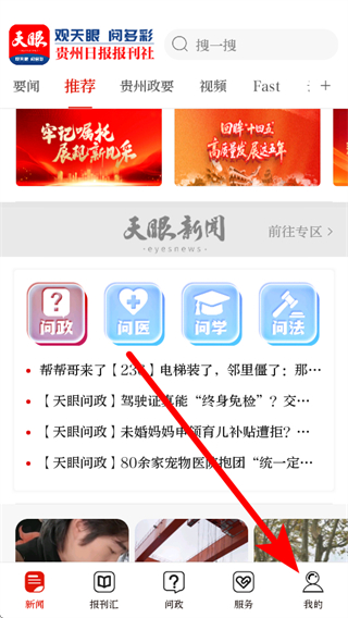 1、打開(kāi)天眼新聞app,點(diǎn)擊底部我的,進(jìn)入個(gè)人的頁(yè)面。