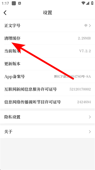 3、在設(shè)置的頁(yè)面,點(diǎn)擊清理緩存,即可完成緩存數(shù)據(jù)的清除操作。