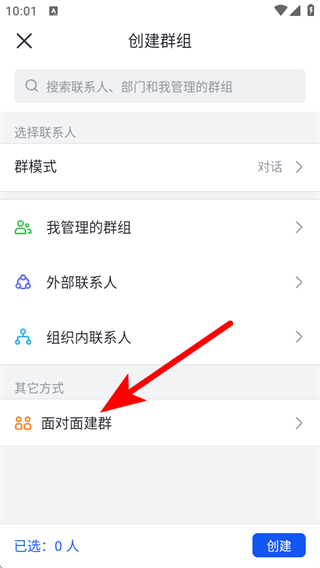 3、在創(chuàng)建群組頁面,點擊面對面建群,進入面對面建群設(shè)置界面。