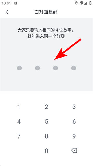 4、在界面輸入4位數(shù)字,與其他成員輸入相同數(shù)字,完成面對面建群操作。