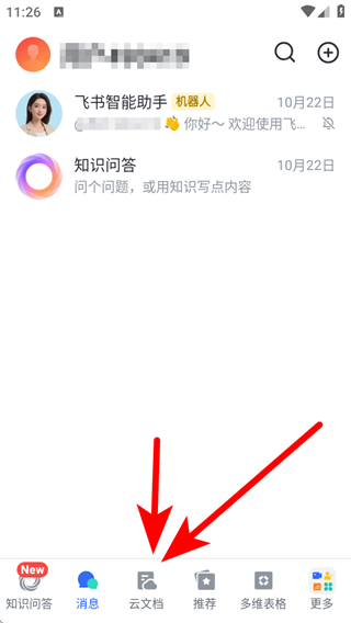 1、打開飛書APP,點擊底部云文檔,進入云文檔頁面。