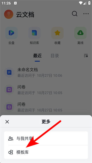 3、在更多選項中,點擊模板庫,進入選擇模板的頁面。