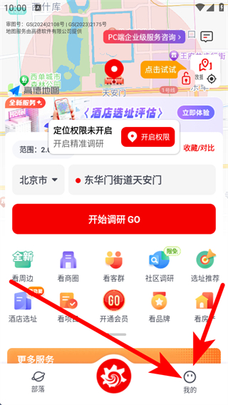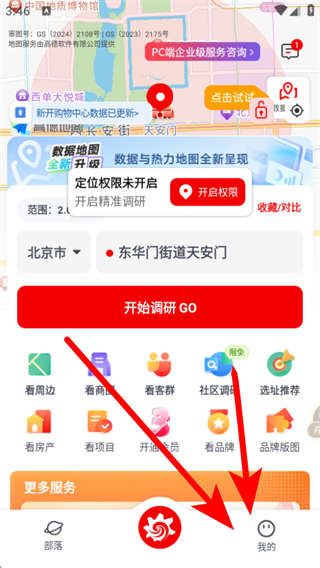 1、在邊界獵手首頁,設置調研區(qū)域后,點擊開始調研GO按鈕,進入詳情頁面。