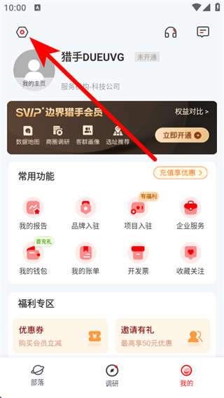 1、打開邊界獵手app,點擊右下角我的,進入個人中心頁面。