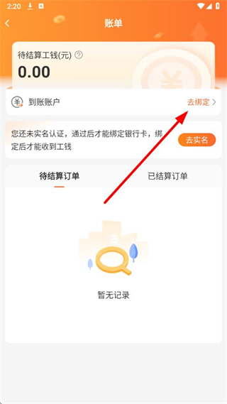 2、在賬單頁(yè)面,點(diǎn)擊到賬賬戶去綁定選項(xiàng),完成綁定操作。