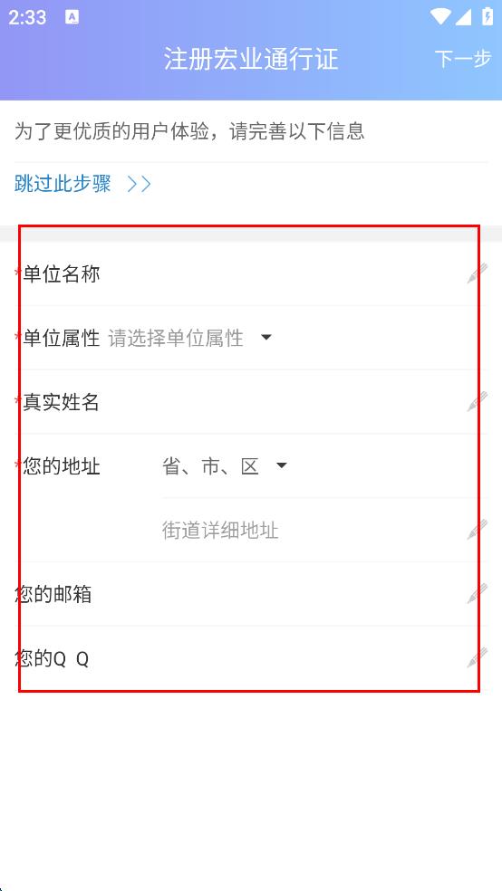 4、在完善信息頁(yè)面,填寫單位名稱、單位屬性、真實(shí)姓名等信息完成注冊(cè)。