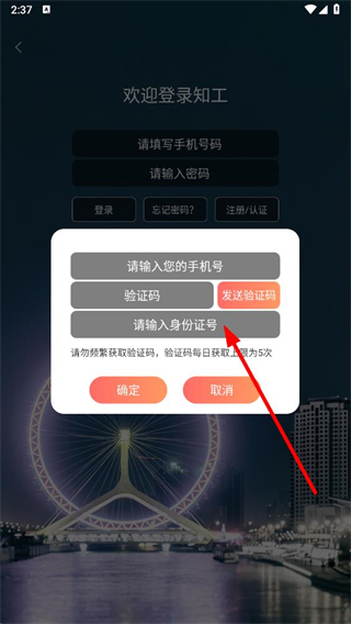 4、在注冊認證彈窗中,輸入手機號、驗證碼和身份證號,點擊確定完成賬號注冊。