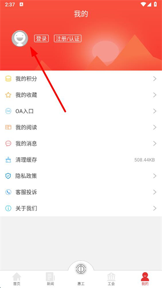 3、在登錄界面,點擊注冊認證選項,進入注冊認證。