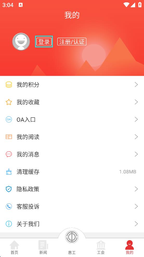 3、在個(gè)人中心頁(yè)面,點(diǎn)擊登錄按鈕,進(jìn)入登錄界面。