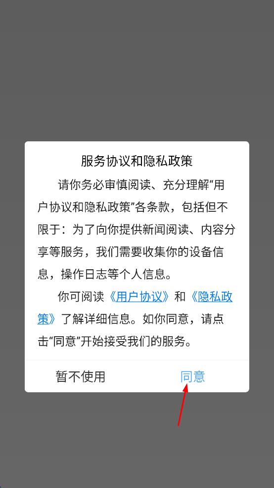 1、打開知工APP,出現(xiàn)服務(wù)協(xié)議和隱私政策彈窗,仔細(xì)閱讀內(nèi)容后,點(diǎn)擊同意按鈕。