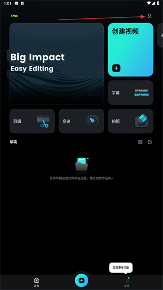 1、打開萬興喵影APP,進(jìn)入時點擊右上人像的圖標(biāo)。