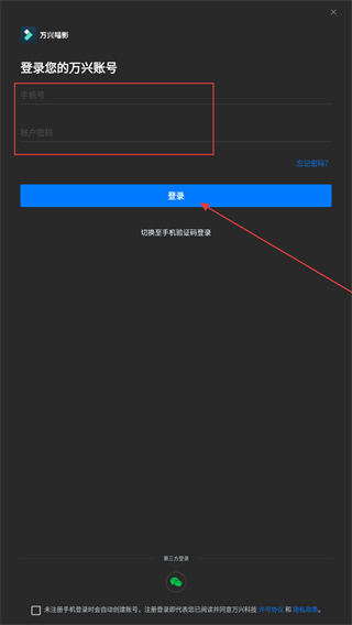 4、輸入手機號、密碼后,點擊登錄的按鈕即可完成。
