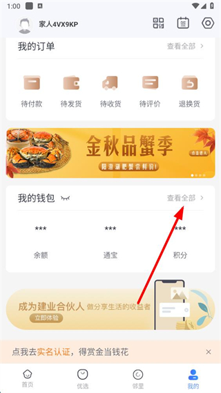 2、在個人頁面中,點擊我的錢包右側(cè)的查看全部選項。